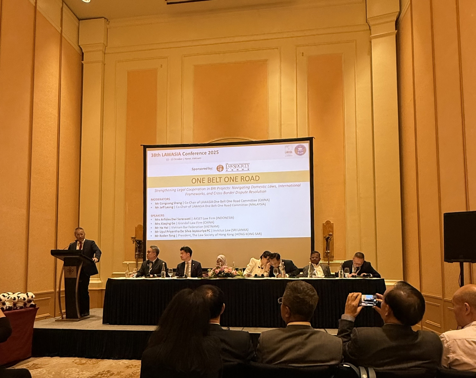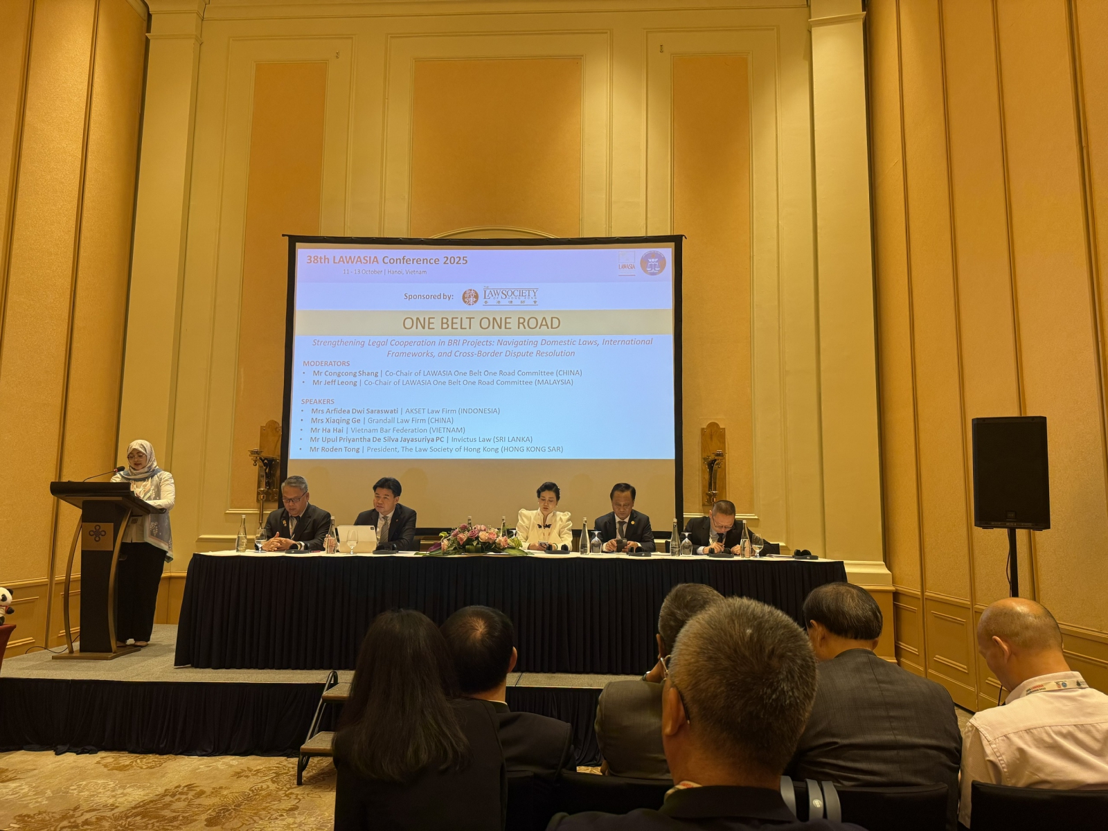 Trong khuôn khổ Hội nghị Luật sư châu Á – Thái Bình Dương lần thứ 38 (LAWASIA 2025), chuyên đề “One Belt One Road” (Vành đai – Con đường) đã diễn ra sôi nổi tại Hà Nội, với sự tham dự của các diễn giả, học giả và luật sư đến từ nhiều quốc gia trong khu vực. Phiên thảo luận tập trung vào chủ đề: “Tăng cường hợp tác pháp lý trong các dự án BRI – Điều hướng hệ thống pháp luật trong nước, khung pháp lý quốc tế và giải quyết tranh chấp xuyên biên giới.”